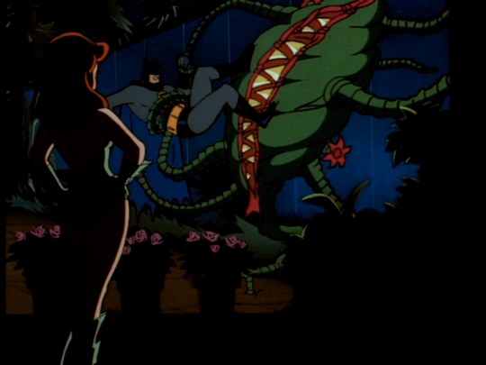 Running a background check on his friend’s fiancée, Bruce learns Isley is a biochemist who helps develop perfumes, as well as being an expert in extinct plants. Racing to Pam’s enormous greenhouse, Batman observes her cultivating the plant in question.