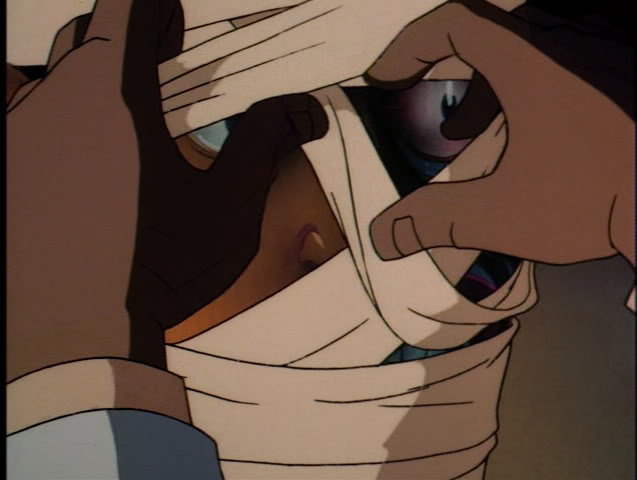 Sure enough, when the bandages come off, the doctor is horrified by Harvey’s appearance. Demanding a mirror, Dent looks upon his twisted façade and screams, just as Grace is on her way to visit. Catching sight of her fiancé, she faints, with Two-Face saying goodbye to her and fleeing through a nearby window.