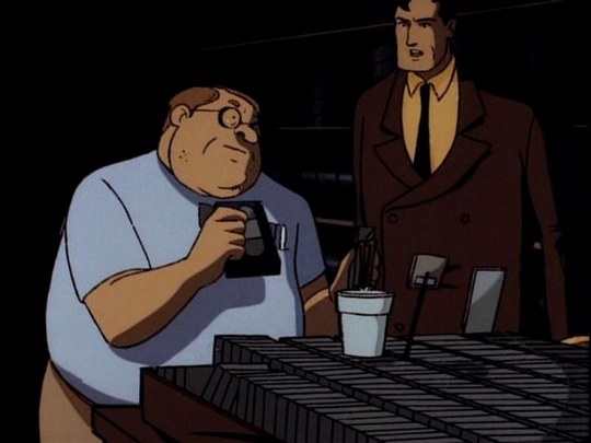 Speaking of Timm, The Mad Bomber is drawn to look like him, while the video store clerk is drawn like Paul Dini, who made an effort to lose weight after seeing himself this way.