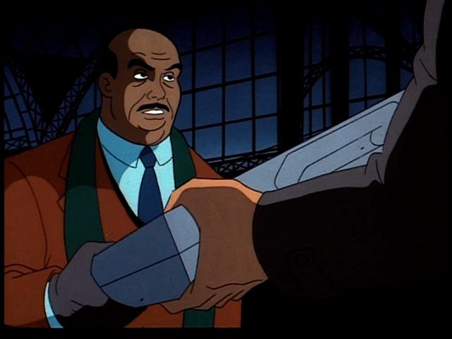 Lucius Fox meets with Bruce Wayne in a closed tramway station… at 3am… Bruce reasons that his office and home have been bugged by Roland Daggett, who Lucius exposits has been trying to take over Wayne Enterprises. Only it turns out ‘Bruce’ isn’t Bruce at all, and the entire thing was a sting by Daggett’s men in an attempt to destroy some crucial evidence against him.