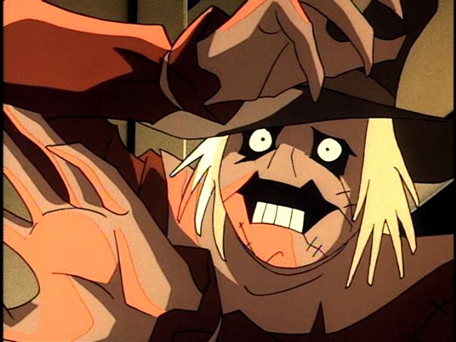 Among his hallucinations are Joker, Penguin, Two-Face, Poison Ivy, Robin, Alfred and Scarecrow himself, all transforming into each other and changing sizes, reducing him to a screaming wreck.