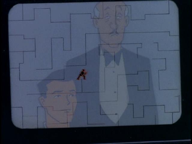 Honestly this Riddler take is about the only thing the episode has going for it. It’s a fantastic re-design that is well written and performed, and he has the rare distinction of evading capture. For as much as I wish the riddles themselves were better, this is as close to a definitive version of the character as exists, without a doubt informing his presentation in the Arkham video games, right down to projections of his face onto his giant puzzle houses.