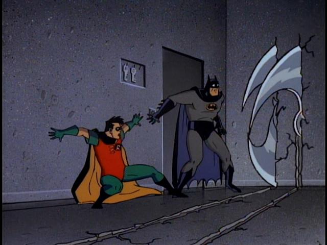 Things differ a little from there, but both episodes have lame endings and are missing a certain something. While I think Riddler is a better written character than Clock King, the latter’s episode is better than this one. The main reason is that so much of the story hinges around a series of riddles, which the writers admitted to struggling with, and the majority of which a child would have absolutely no chance of solving. Some of them aren’t even riddles! You don’t want them to be so easy that Nygma and Bruce don’t come across as super-geniuses, but the answers shouldn’t feel like they’ve been conjured from thin air (for the most part). Eric Radomski agrees with me, feeling Batman solving them all by just taking a few seconds to think takes the excitement out of things.
