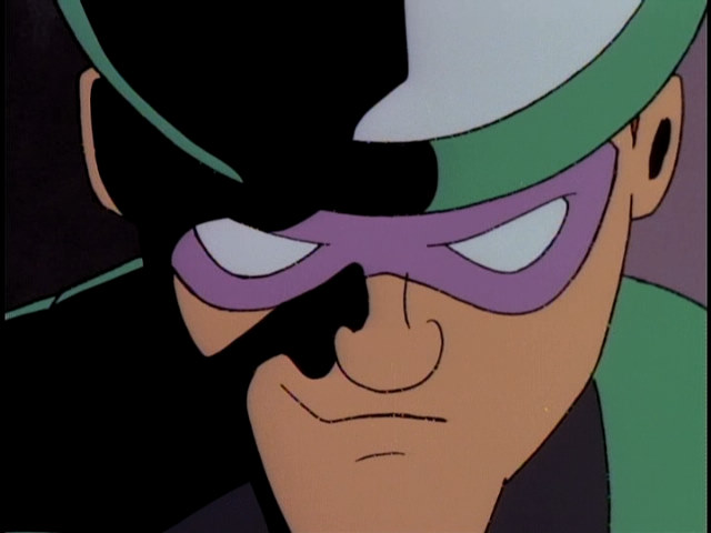 It’s been troubling me how long we’ve gone without Riddler making an appearance, as by modern standards he was one the most glaring omissions. I’m glad they patterned his look more after Frank Gorshin’s second costume in Batman ’66 rather than the unitard that Jim Carrey ended up sporting three years after this episode.
