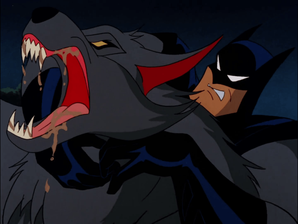 Batman intervenes and the two fight on a narrow bridge as the Caped Crusader tries to deliver one-liners. He abandons the fight after the monster hurls the guard into the river below. Bats rescues the guard but the werewolf bolts.