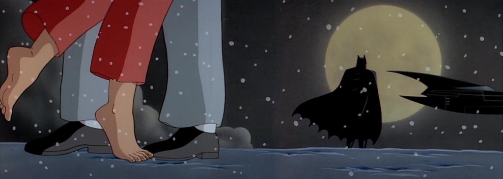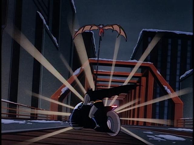 The real highlight of these is the big chase sequence from the lab, through the snowy streets and up onto a train-line. There is a genuine feeling of danger throughout and even a good sense of geography as Batman drives his bike up some stairs and onto the tracks, culminating in him being forced to let the villain go to avoid certain death. This is stronger than most of the action scenes from early episodes combined.