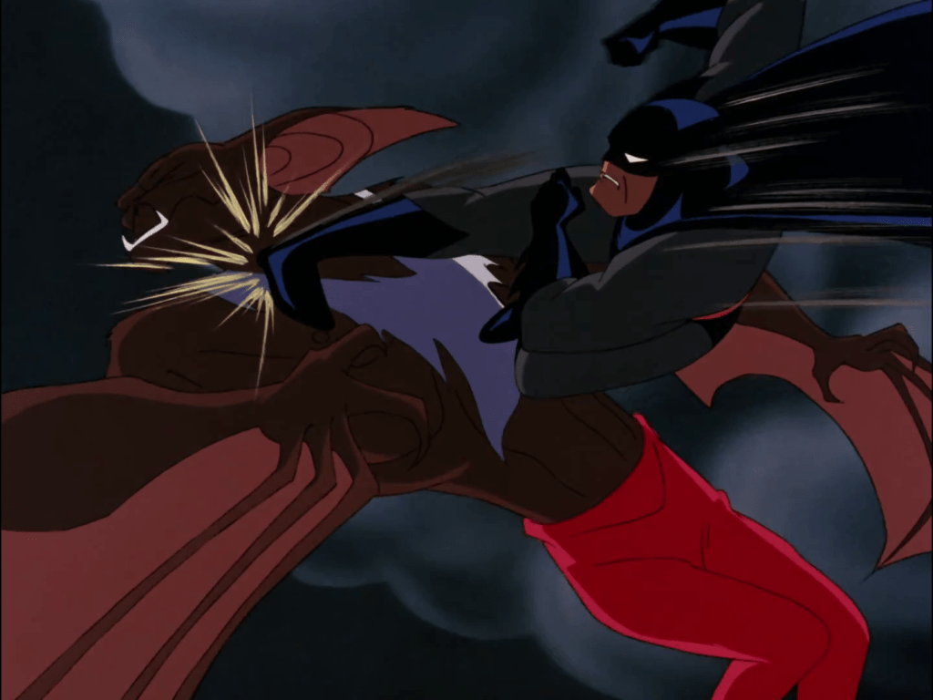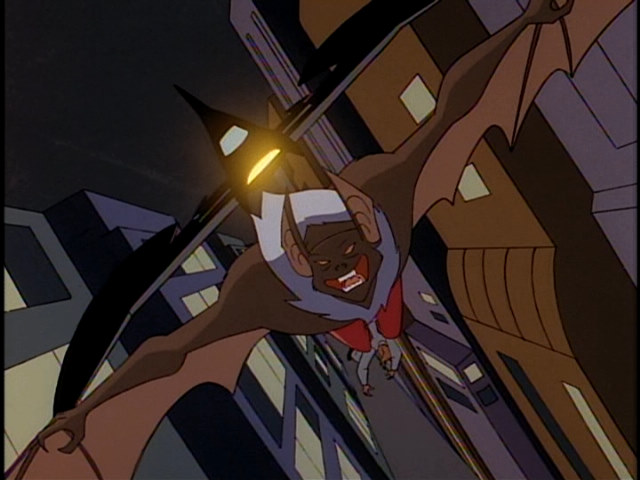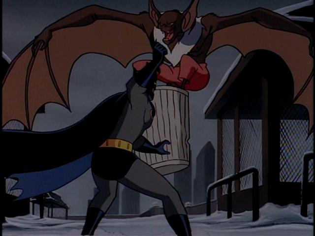 Obviously this is technically not the same villain as in ‘On Leather Wings’, but for intents and purposes we’re evaluating a giant mutant bat, as neither of the human counterparts are villainous. The Francine version actually seems stronger, giving Batman more trouble in a physical confrontation and displaying stronger echolocation (demonstrated by the excellent Bat-Vision POV shots), though I would imagine the latter has more to do with production reasons than plot ones. The addition of losing her memory of transforming opens some fun doors too, so up the list she/they go.