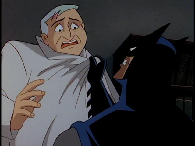 Bats breaks into Dr. March’s office and finds evidence that he had been experimenting with Langstrom’s mutagen. March confronts him, gun in hand, raving about bats being able to survive a cataclysm.
