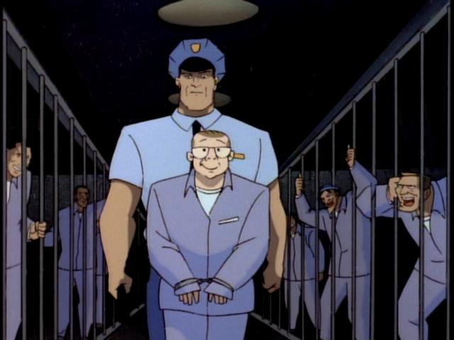 Sidney tries to leave but Batman has him tossed in prison as well, where the inmates treat him like a king, causing him to beam with pride.