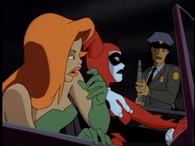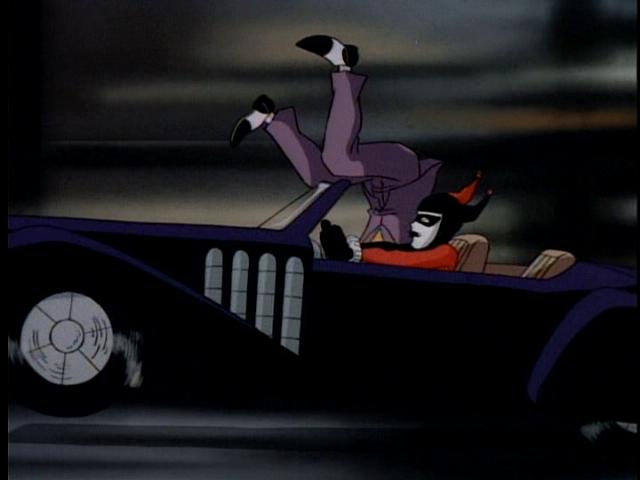 Another episode that begins in media res, with a terrified Harley Quinn acting as chauffeur for Joker in a car chase with Batman. Mistah J plays backseat driver, giving bad directions and vague instructions, but still blames Harley despite her being solely responsible for them getting away.
