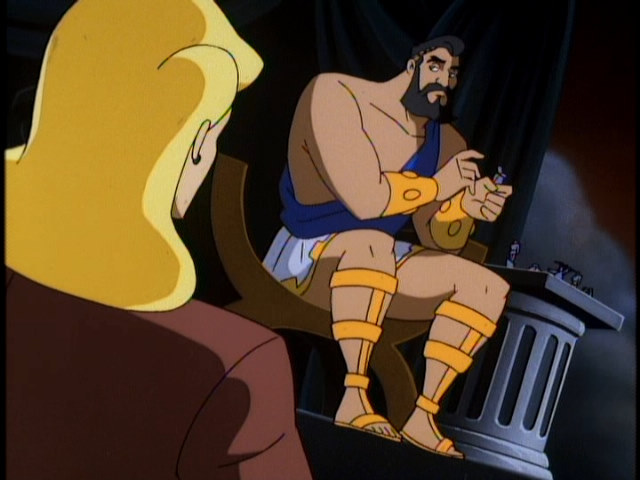 Clio kindly fills us in that because of Zeus’ business success (legitimate and otherwise), he became so arrogant he literally believes himself a god. Oh and they were formerly lovers.