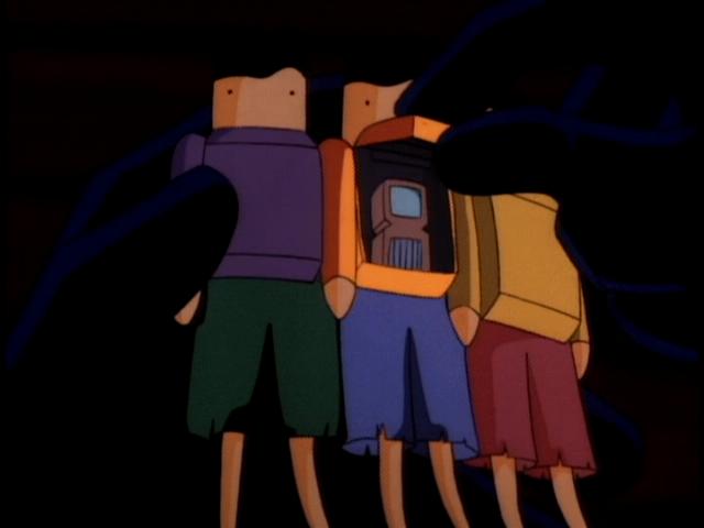 Hatter orders Batman beheaded, but our hero is instead able to trigger a small device from his utility belt that emits a high pitch frequency that breaks the hypnotic control.