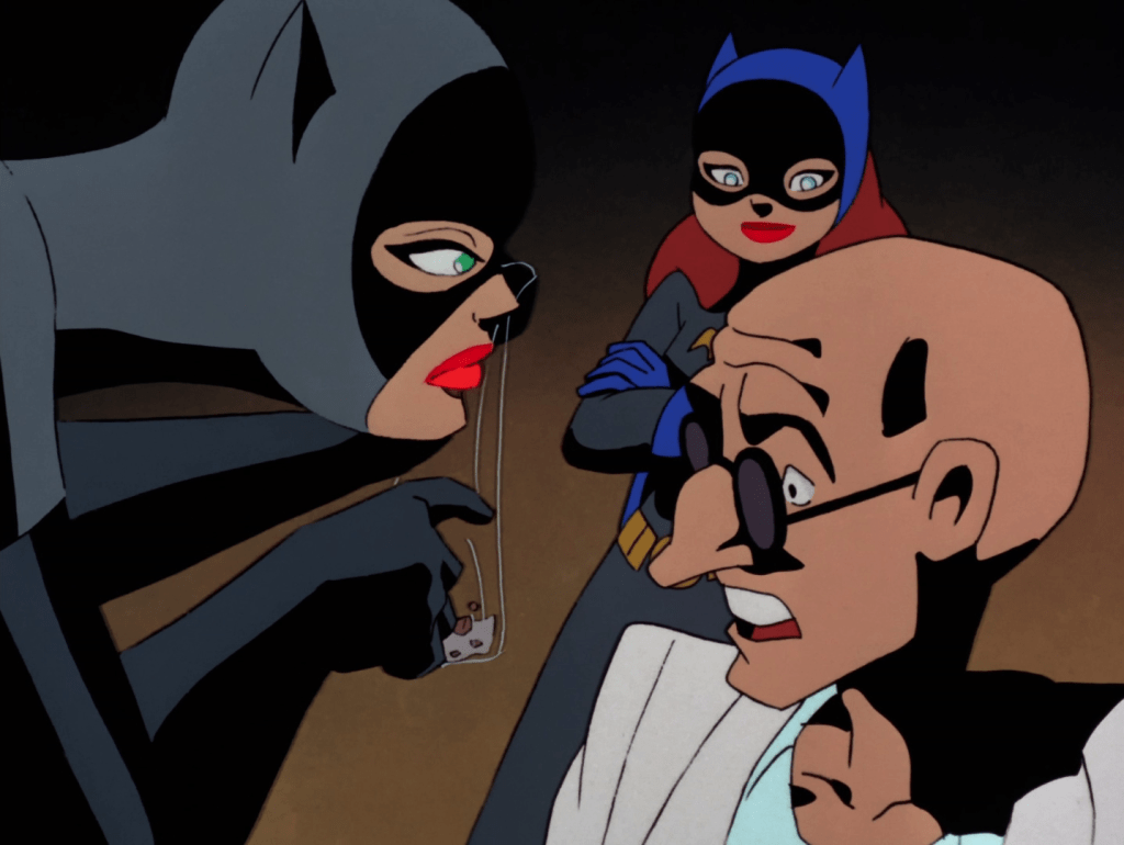 In some ways this was a proof of concept for The New Batman Adventures, pushing Batman aside to let the supporting cast take the lead, while simultaneously assassinating Robin’s already middling character. I’m not overly mad at them for that, as he’s been lame more often than not in the series, but there is something funny about casting one of comic books’ most popular characters as a grouchy know-it-all who impedes the progress of two badass women. He even calls Bruce in Paris (oh, he was in Paris by the way) to snitch on them.