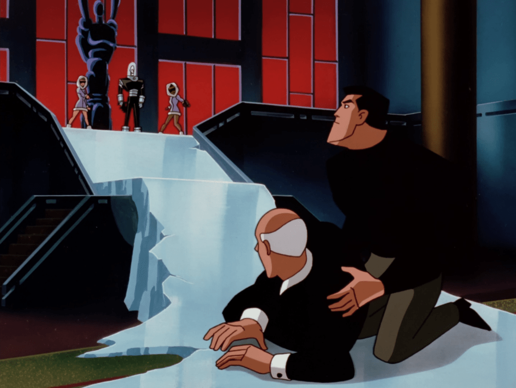 When they arrive to kidnap the billionaire, he’s too busy getting absolutely owned by Tim Drake in a debate about due process stemming from his civics homework. Victor begins to put Alfred on ice, but Batgirl interrupts and chases him off.
