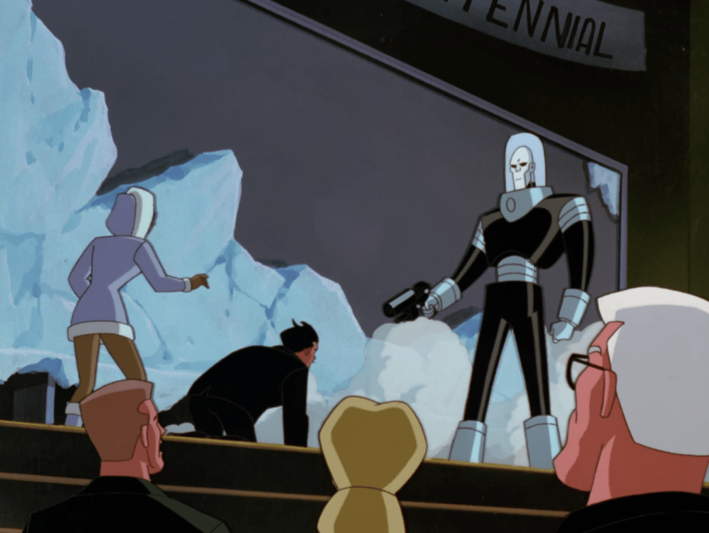 The Ice Maidens are a huge step down from his polar bears, even if they’re well-voiced, and are kind of emblematic of the entire problem with this episode. They just don’t really fit his character. He had henchmen in his first appearance, but I really dug the idea he was growing more and more detached from humanity, going as far as to live in the North Pole with animals for company (and his Inuit friend). This feels like a major rollback of that characterisation, though I guess you can argue the movie warms his heart a little. But towards this? Meh.