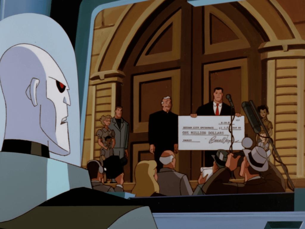 Elsewhere, Freeze keeps a team of doctors hostage for unknown reasons. He declares Bruce Wayne his next target, because he lives a life of safety and security, which irritates him, I guess?