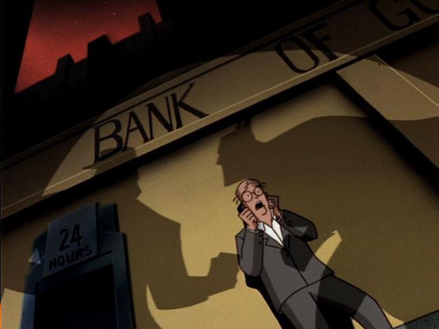 The scene at the docks is reused from ‘Sins of the Father’, with Two-Face briefly visible. Likewise, the scene where Scarface blows up the little bridge was later re-used in an episode of Superman: The Animated Series. They’re going to be re-using explosions a lot from now on.