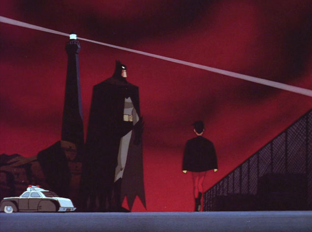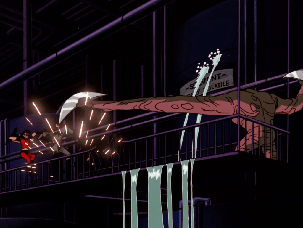This is one of the better animated episodes in the whole show, with Annie’s design and movements in particular being pretty evocative of Japanese animation, which makes sense given the director’s resume and this being another episode that was handed over entirely to TMS. There’s also just a fluidity of movement that earlier episodes of the show simply weren’t capable of, including some slick ‘camera’ movements during the final confrontation with Clayface. Speaking of the villain, his appearances have been so limited because of how difficult he is to animate (hence spending over half of his screen time in disguise), but when they do use him, he’s a treat to behold; a completely different animal to the typical Batman villains.