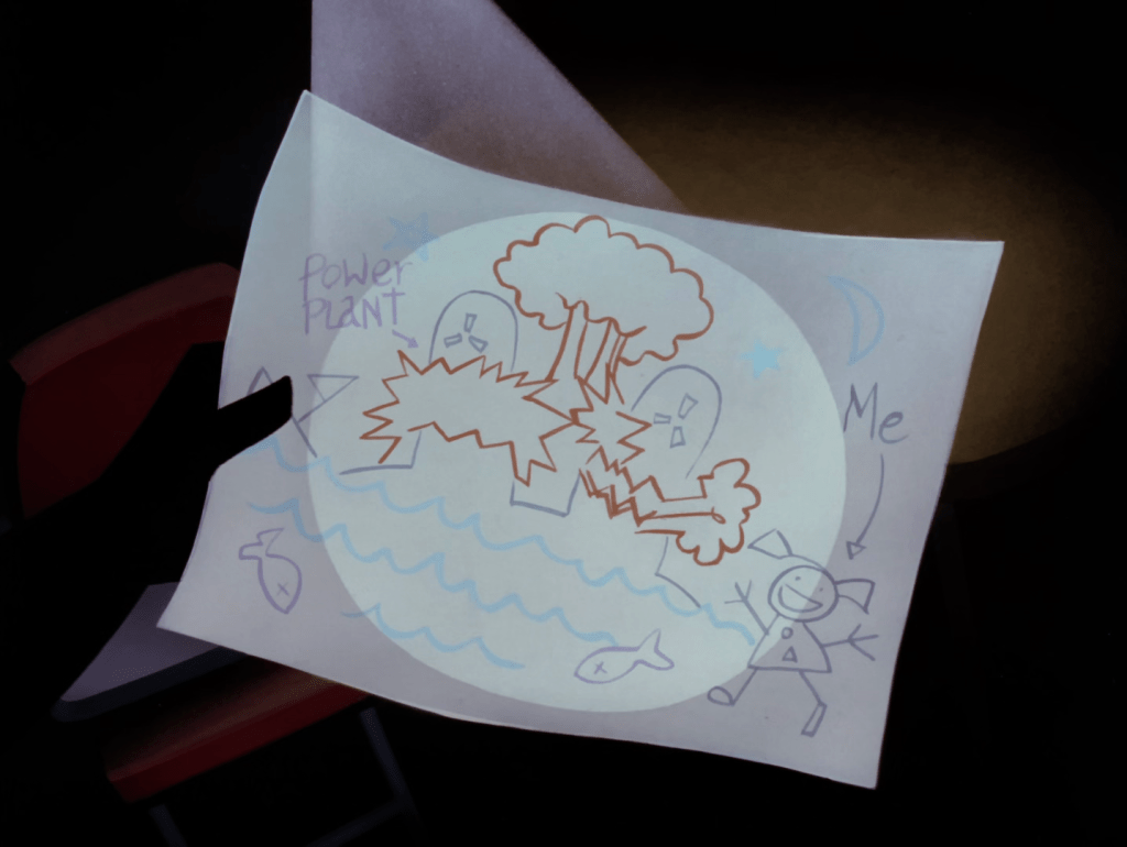 Bruce and Barbara arrive on the scene (after discovering a child-like sketch of the plan in the couple’s hideout) and the men brawl while Barbara neutralises the reactor.