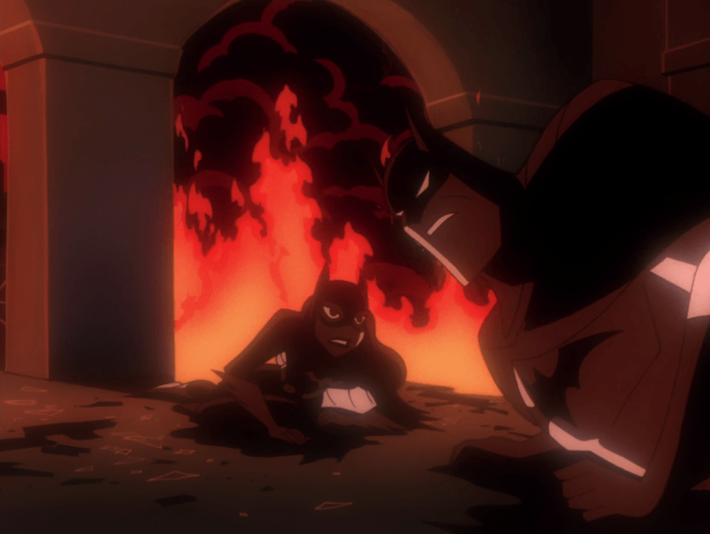 While investigating the lair, Barbara inadvertently triggers an enormous explosion that levels much of the building. Babs is injured during the escape, forcing her to stay in the Batcave as Bruce heads back out to rescue Cassidy, who Firefly kidnapped during their botched investigation.