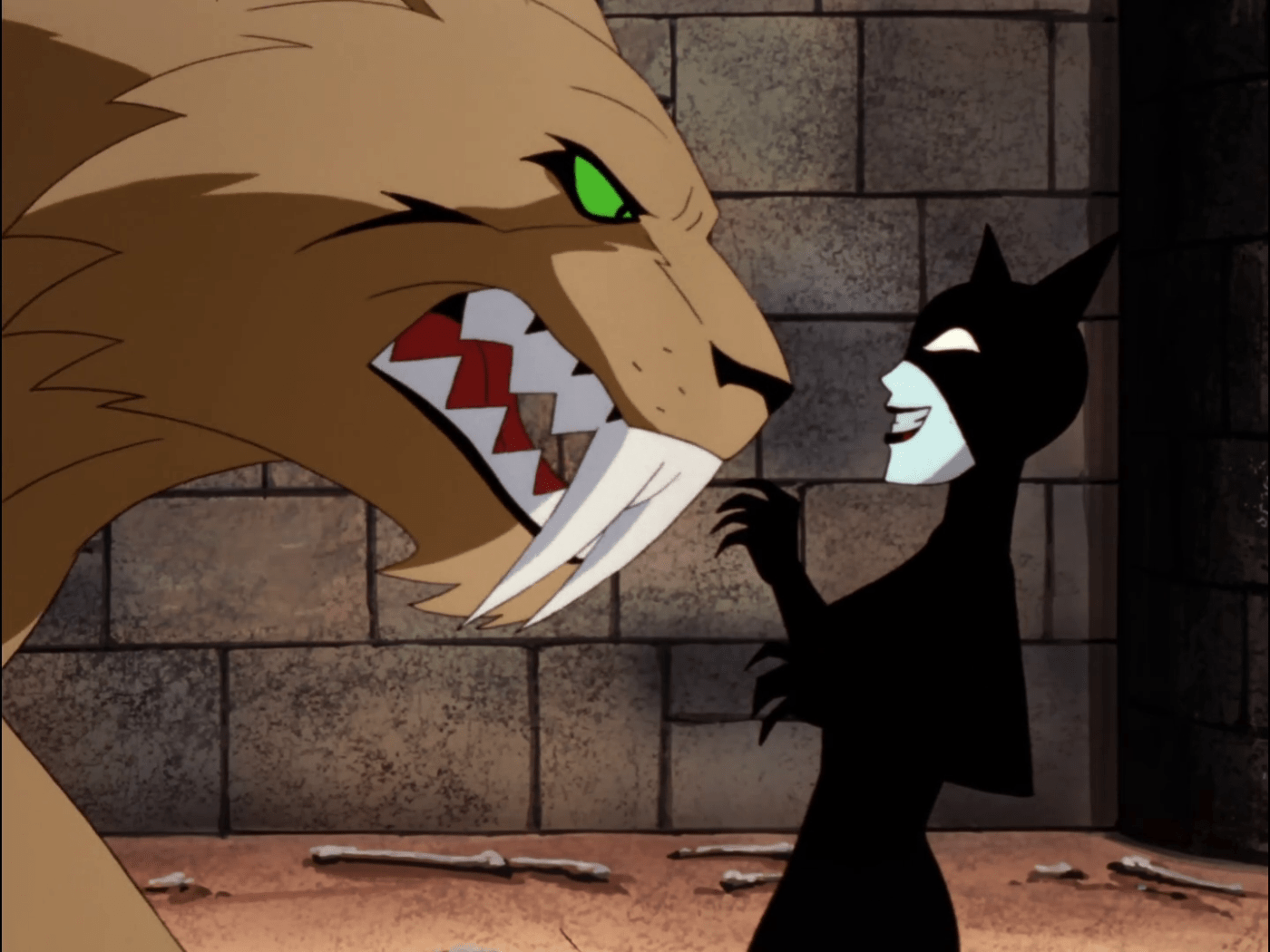 Selina voluntarily leaps in to help, able to charm the beast exactly as she did the jaguar. It licks her face and everything. Her new friend attacks Blake and his men.