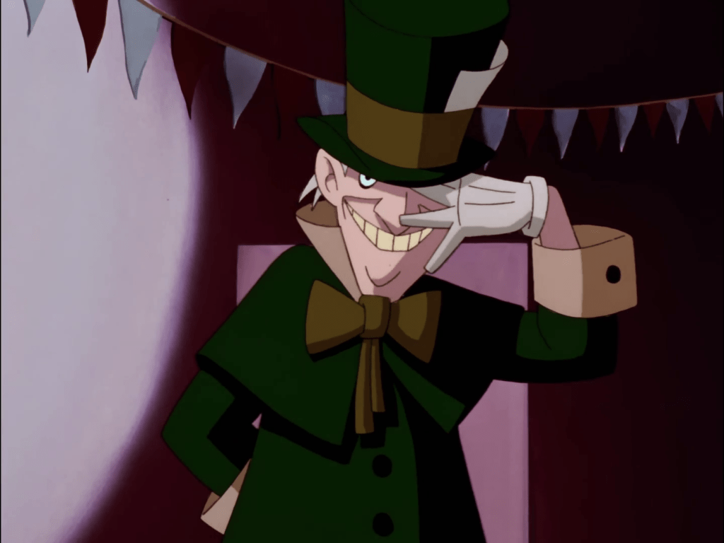 The colours of Mad Hatter’s wig and real hair are briefly switched during his reveal. This is also the second time a villain has hidden in plain sight as a clown.