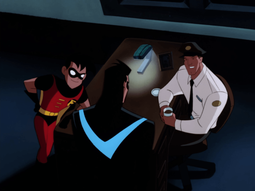 In an episode that’s entirely about Dick Grayson declaring that enough is enough and breaking out on his own… it’s Tara Strong that shines brightest. Afforded the opportunity to show off her range, she is playful and sultry at dinner with Dick, before shifting over to the emotional maturity of going to Bruce for help, then back into the trademark sass of Batgirl, before finally matching the energy of Kevin Conroy and Loren Lester’s argument. It’s an understated, brilliant performance.