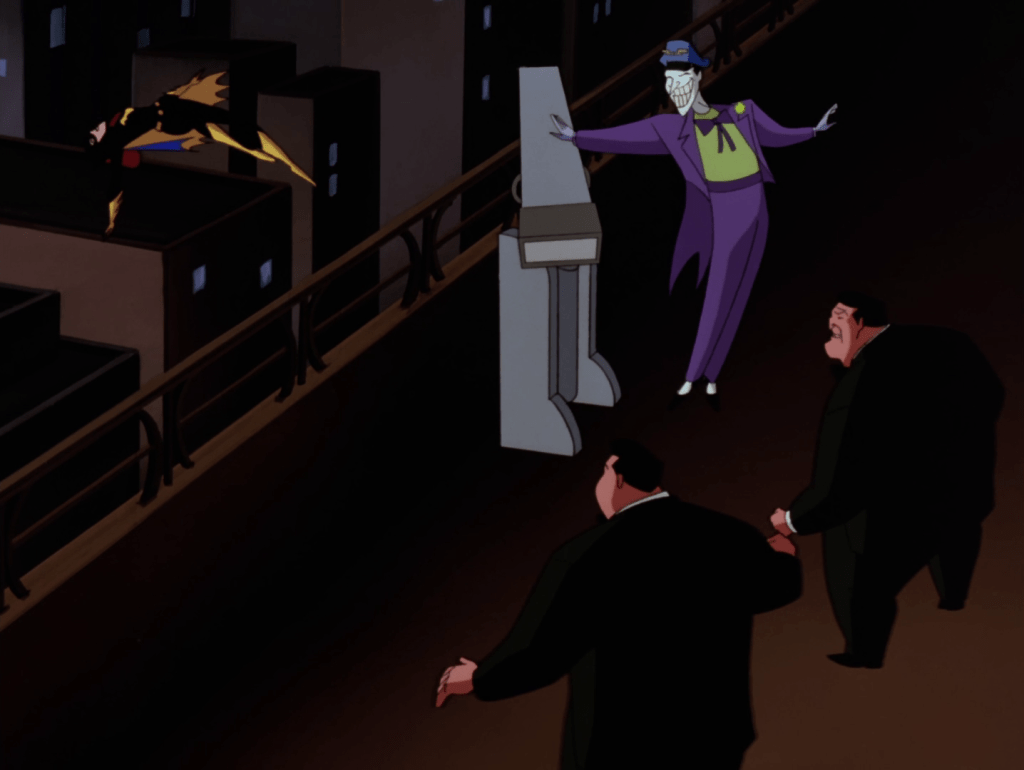 Joker is theoretically an afterthought of this episode, which is devoted to the downfall of Bruce and Dick’s relationship, but being the delightful Murder Clown he is, he’s able to shine in spite of having such minimalist material, commanding audience attention. He’s in full cartoon mode, wearing a pilot’s outfit and yucking it up to the max. It’s lovely.