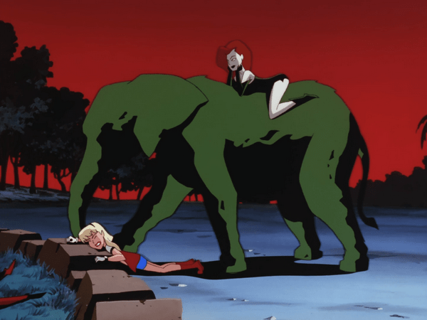 Ivy brings topiary animals to life and sets them on Supergirl while Babs desperately avoids Livewire’s bolts. Luckily, a stray spark ignites one of Ivy’s “babies”, causing her to use water to put it out… which takes out Livewire… which electrocutes Ivy.