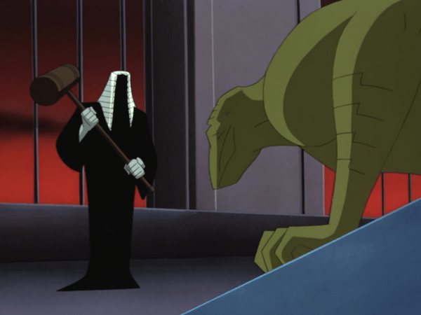 Malachi Throne plays The Judge as a ghostly figure, condemning Gotham’s criminals in a detached, emotionless manner, which really fits the character design and his written motivations. It stops juuuust short of being ridiculous.