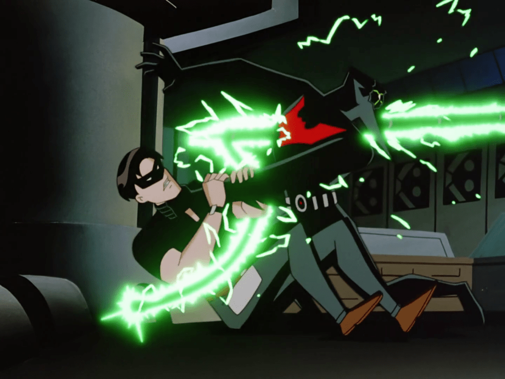It wasn’t all one-sided though, as Terry steps up to the plate and takes on Vance without technological aid, getting to wear the iconic utility belt and Dick Grayson’s old mask. And boy did he take on Vance, thinking outside the box to even the odds even without Bruce’s legendary fighting ability. It’s easy to forget twenty years on that some fans met Terry with a frosty reception, and I would think episodes like this went a long way towards warming their hearts.