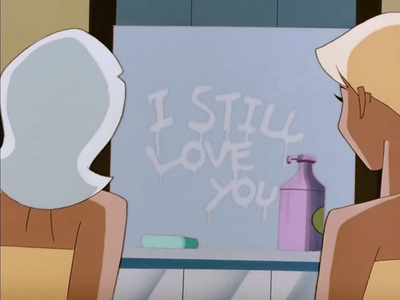 In classic ghost movie fashion, we get some shenanigans in the women’s showers as the water fluctuates temperature and sprays wildly. When the chaos subsides, Blade spots a note in the mirror saying ‘I still love you.’