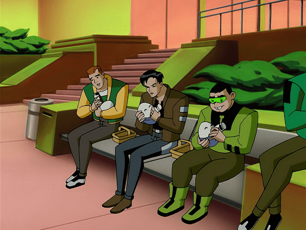 I’m inclined to go with Will Friedle though, as he hams it up to the max both in protest to the assignment but also defending it against the grumpy Bruce (Kevin Conroy is as fantastic in that role as you’d expect). He isn’t happy about the situation, but he also doesn’t want to fail so takes it seriously.