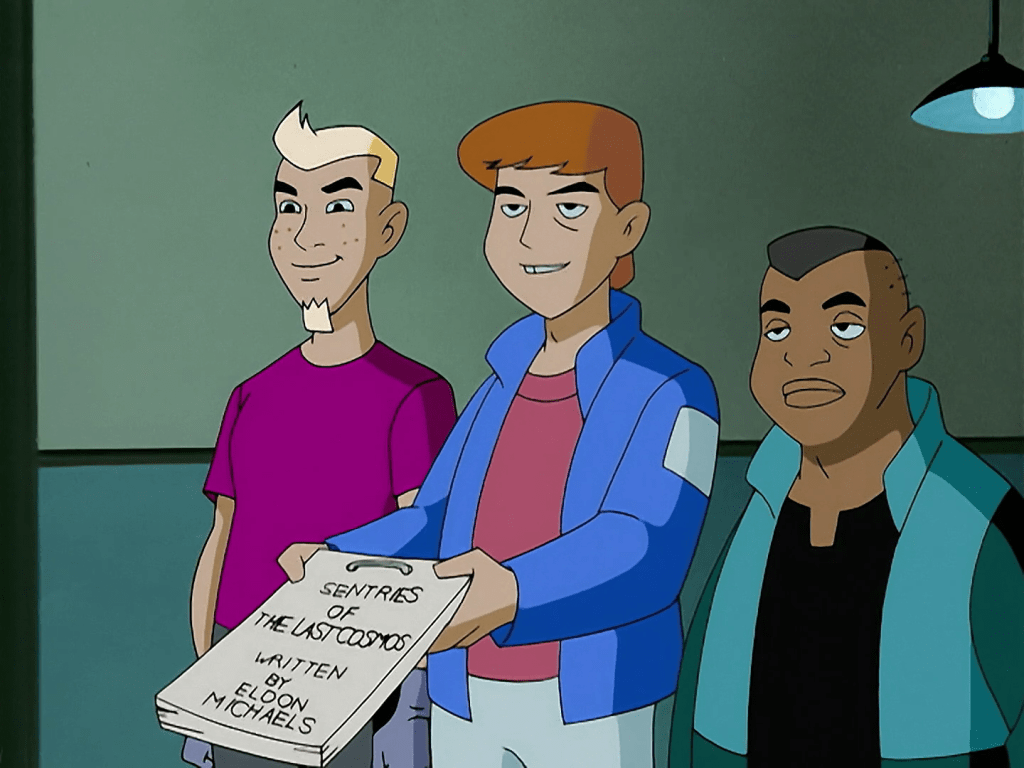 We open with some wacky space stuff! Lasers! Hovercraft! An alien planet! Turns out the whole thing is a VR game called Sentries of the Last Cosmos, being played by Terry, Max and their friend, Corey.
