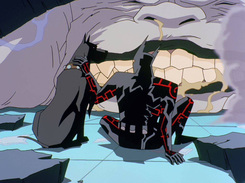 Perhaps the most damning moment of the episode was Bruce’s decision that Terry should pursue this random man Ace went after as a higher priority than recovering his dog, especially given the legwork required to even identify Boxer. If they’d gotten a more clear-cut lead or stronger evidence this is a person Batman should tirelessly track down at all costs, I might have bought it. Instead, it works in direct opposition to the aim of showing Bruce’s softer side in my opinion.