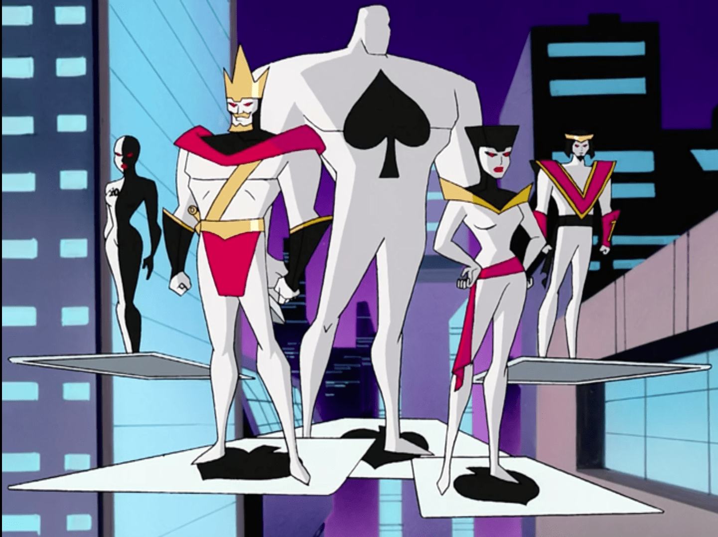 The Royal Flush Gang (minus Ten) break into a museum, but Jack isn’t as good at disarming security systems as his erstwhile sister, and Batman arrives to interrupt them.