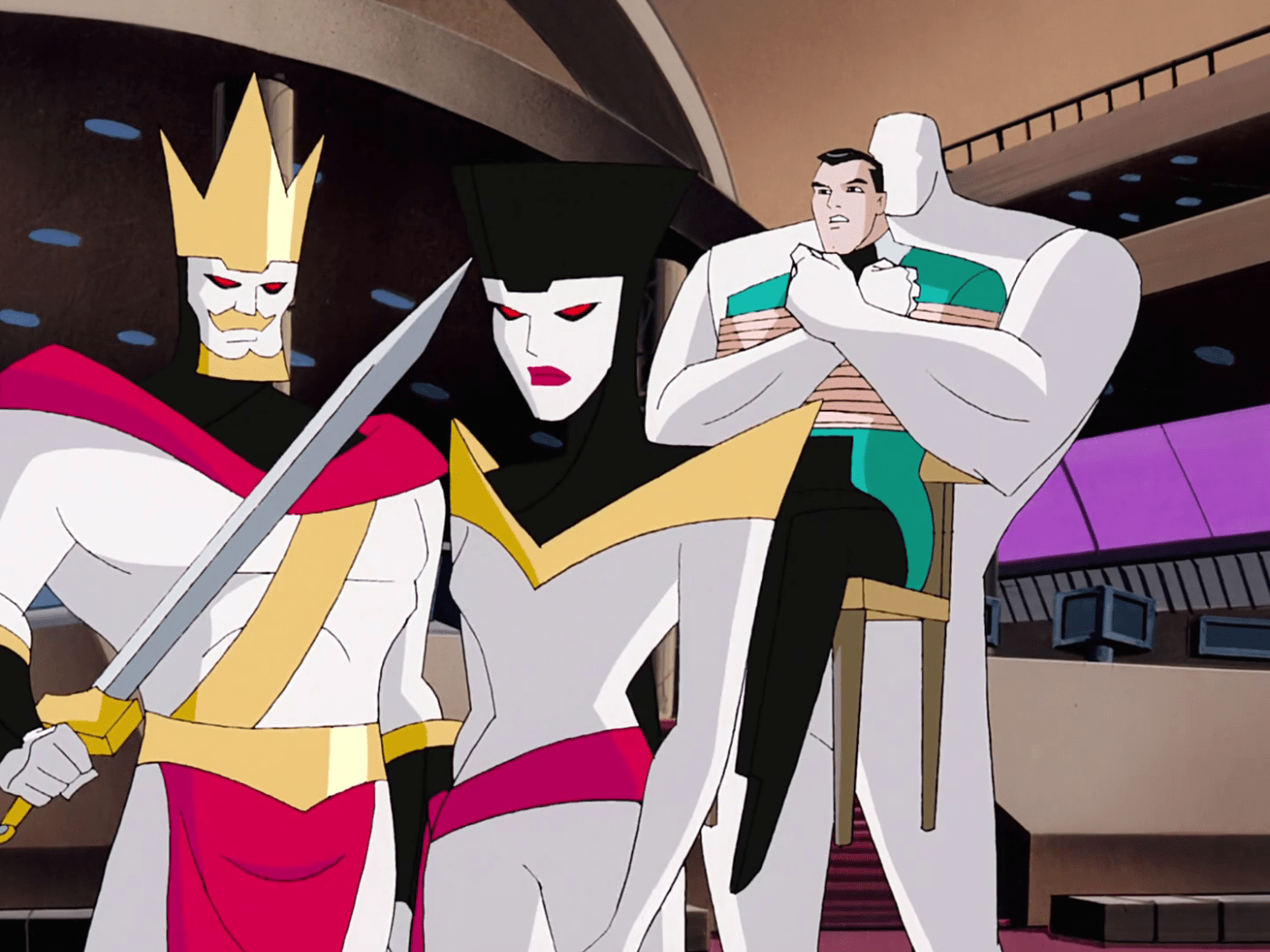 But it’s King that rises to truly great heights by being a premiere scoundrel, stepping out on his wife with Paxton Powers’ assistant/masseuse/bodyguard, and playing everybody against each other. Even without that, he abandons Jack and Queen at different points in the episode AND fights Bruce for a bit, blissfully ignorant to the fact he’s making good on his desire to get revenge on Batman after all these years. There’s even the subplot about King never measuring up to his predecessor (Queen’s father) to emphasise the generational gimmick of the group.