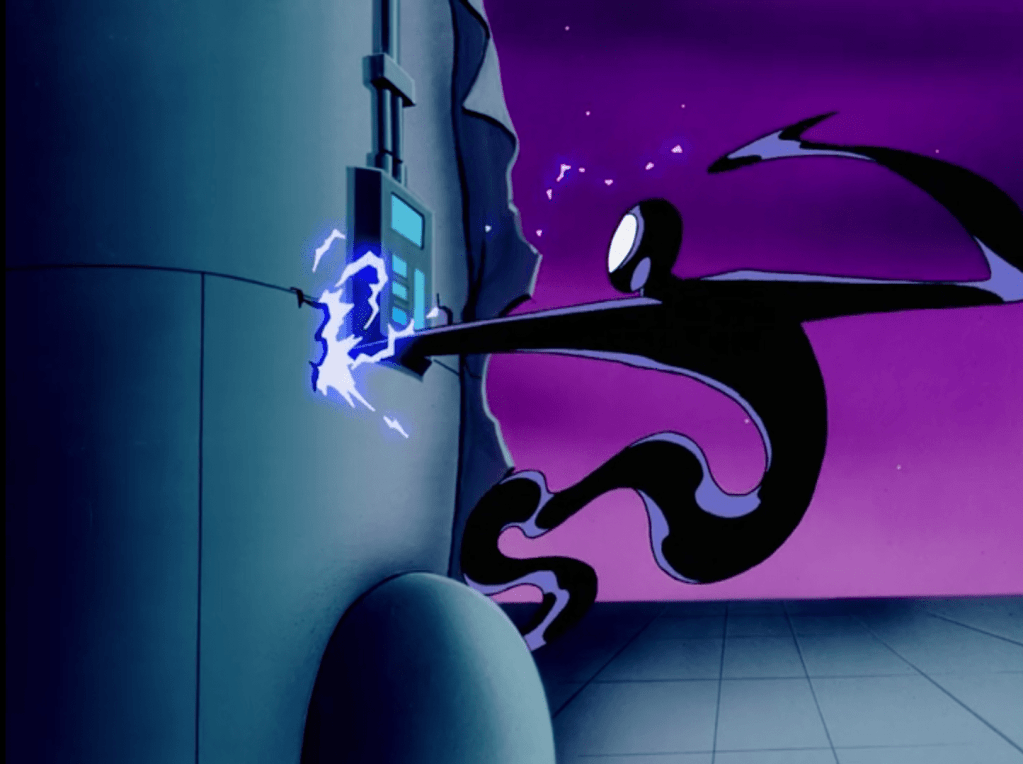 I don’t know if the animators would find coming up with new ways to deploy her abilities a fun creative challenge or an exhausting labour, but the end results remain feeling fresh even on a third outing, and I love that she keeps adapting. There seemed to be a lot more emphasis on her expanding in this episode, versus the smothering and forming blades she did previously. I loved her getting grabbed and just snaking her way under Terry to attack him from behind, and she even ended up almost Bane-ing him!