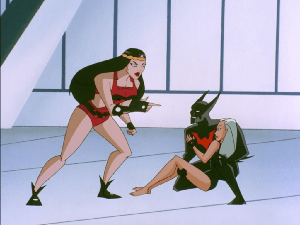 The JLU aside, this was a huge shot in the arm for Batman Beyond which was in the winter of its life at this point. It does this by massively expanding the world and providing exciting new avenues for future stories… which wouldn’t really be taken, but still! Terry jumping at the chance to join the team directly contrasts with Bruce’s reluctance to collaborate, while his decision to steal Barda’s Mega Rod instead of just asking for help shows the negative influence Bruce has had on him. He’s simultaneously infantilised as a bright-eyed kid – almost starstruck by his superhero peers – and given more agency than ever by getting to choose for himself whether or not he will join the team, and entrusted with finding the traitor in their midst. It’s a nice dichotomy that utilises the full history of the show.