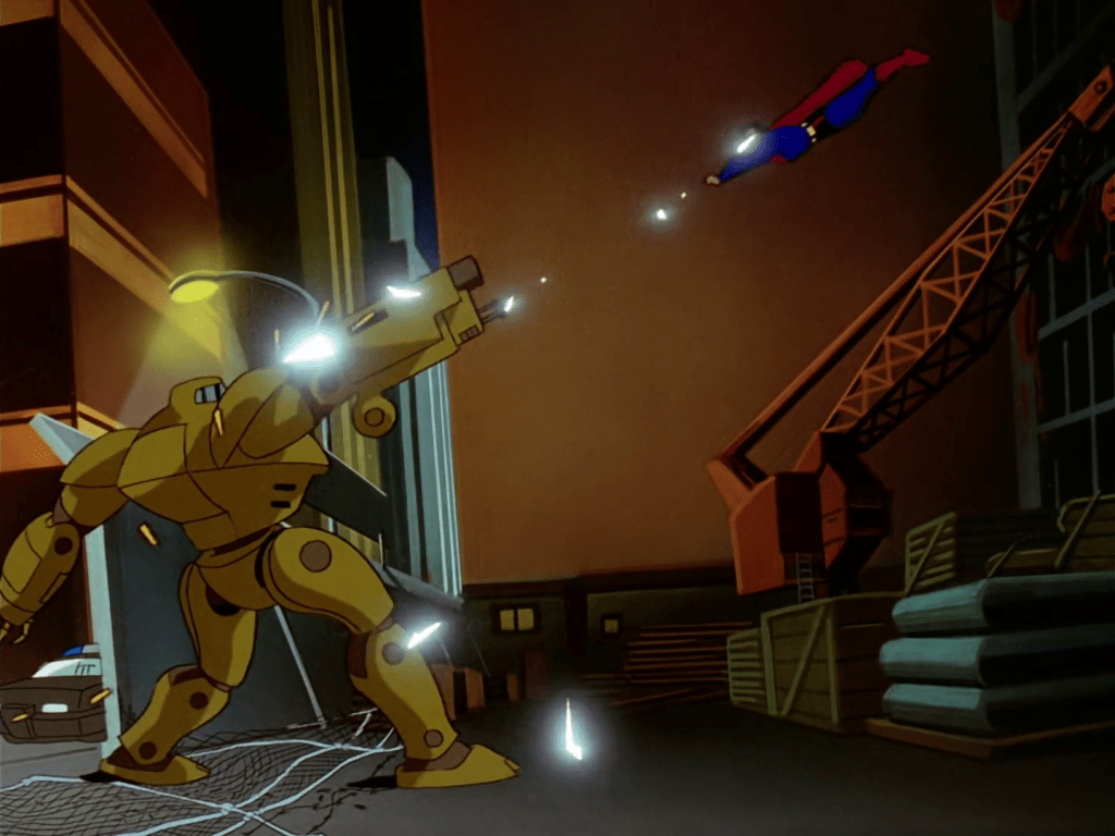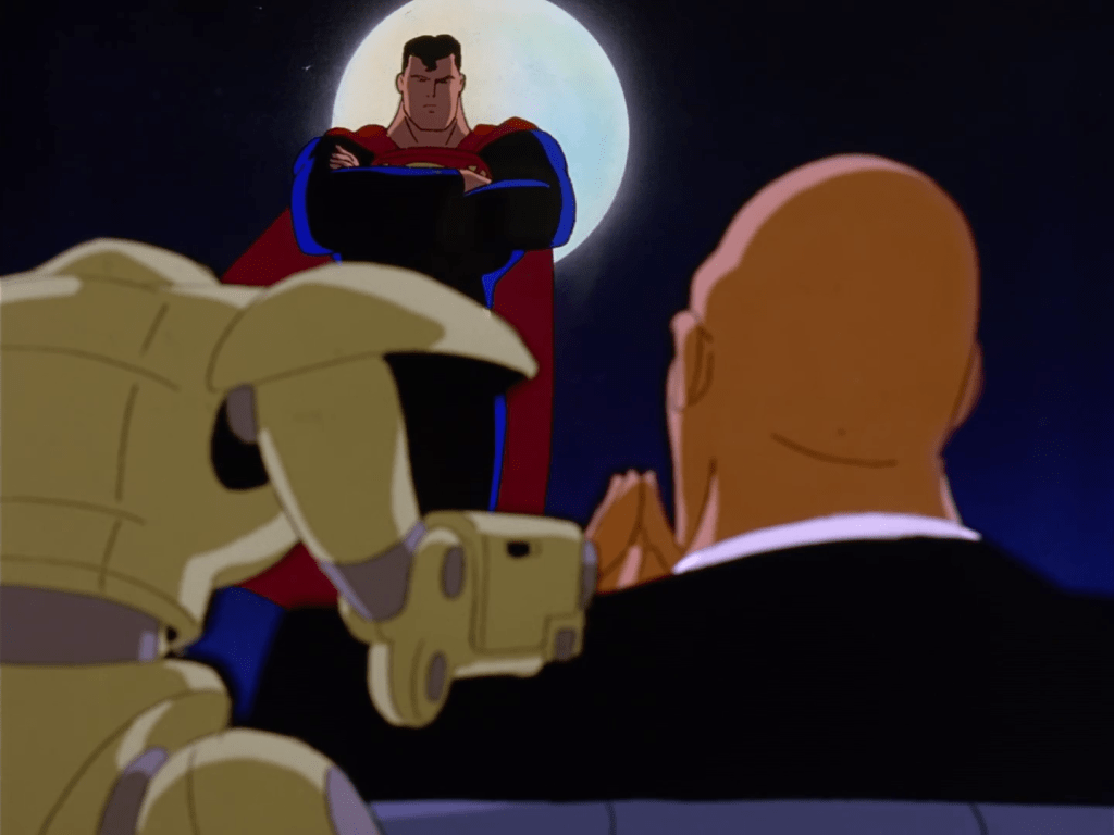 I have similar feelings about the final battle, as Corben and the cool battle suit inflict shocking amounts of destruction on The Man of Steel. Him getting back up and winning in the end anyway is still fun given it was a struggle to begin with. The battle suit made for a fun first true adventure, both because of its dope design (the animation on the fight scene is excellent) and the tangled little conspiracy between Luthor and Kaznia. Clark and Lois working the case as journalists and then Superman capping the whole thing off with his heroics made for a fun multi-act structure, and it was all against a backdrop of our hero properly introducing himself to the world… and his nemesis to boot.