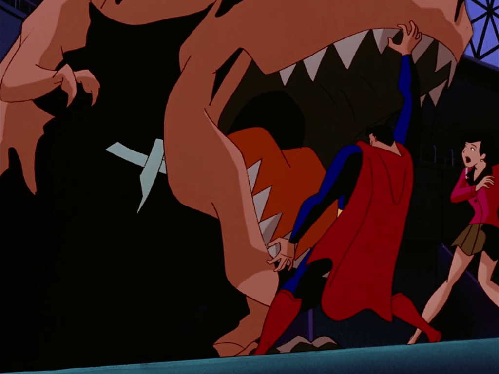 The robotic T-Rex was good old dumb comic book fun, and I like that they chose to have Lex directly controlling it rather than just setting it loose. He desperately wants to be able to fight Superman. See also his second attempt to bribe Kal while lording his power over him. Seriously guys, why don’t you just kiss already?