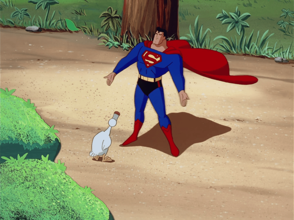 The smallest of these is that I’m unclear why the Preserver would give Superman his costume back after taking the trouble to change him into traditional Kryptonian garb. Like it lasts less than 60 seconds between the two episodes. Seems an unnecessary flourish, when they could have not bothered or kept him in the alternate outfit until the end. Secondly, I’m not entirely convinced they needed to bring the rival bounty hunters aboard when Preserver’s security measures and wacky monsters would have sufficed. I know I’ve sung the praises of the writing staff for creating triangles with two rival factions of bad guys and Superman having to pick a side, but it wasn’t quite the same here. Lobo wiped the floor with Gnaww’s gang in Part I and they didn’t really have enough personality to justify a return. I get the impulse with his original employer being angry at him for ostensibly welching on their deal (due to being taken prisoner), and I guess the payoff is funny with Lobo showered in praise, and the hunters showered in gross bathwater from their disgusting Emperor.