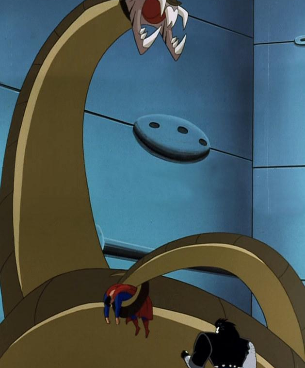 Their best mileage this time is him being a shitty teammate to Superman during their escape. He clocks Kal in the face to start it, tosses him to the security robots, has to be explicitly asked to assist with the snake, and happily runs off on his own near the end. Oh, and he nearly spaces our hero near the end.
