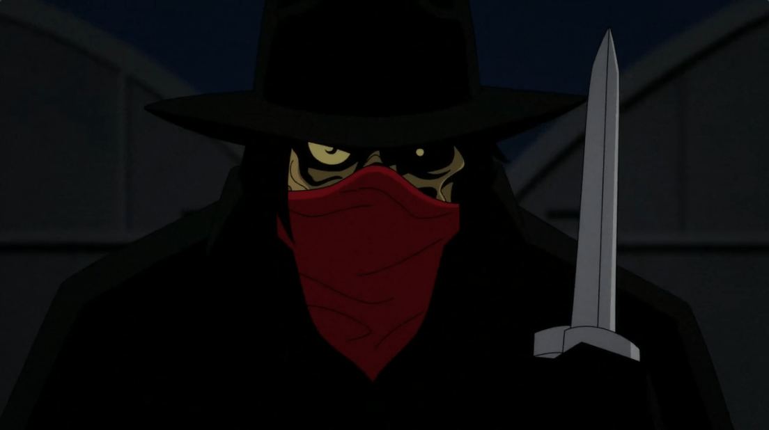 Beyond that it just played out quite nicely, with the lovely musical stinger when Montoya realises Karlo lied to her, the always fun rooftop chase (complete with forcing the hero to save a bystander in order to get away), murder investigations on big gorgeous empty movie sets, Batman using a mercury vapour lamp to find a removed/hidden inscription, freakin’ sword-fighting up a spiral staircase and some pretty gnarly corpses under a stage. Big fan of Bruce being able to estimate a time of death significantly before one of them was last seen, pointing to the Clayface reveal.
