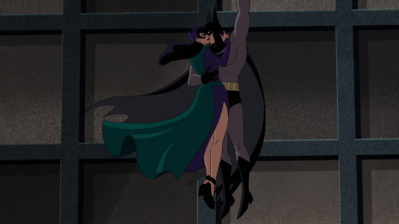 Meanwhile on the other side of the episode, the ever delicious Batman/Catwoman dynamic is in full effect. I really like that he takes her down quite easily the first time because she’s not considered you need “toys” to supplement the costume and the skills, and then learns from it and adds more to her act. Their chase scenes are a lot of fun, in particular when they’re bathed in gorgeous neon light, and I enjoyed them kissing as he gently lowers them with his grapple-gun, only pushing her away when they safely touch down. He could easily have resisted without dropping her, so my personal read was he was into it.
