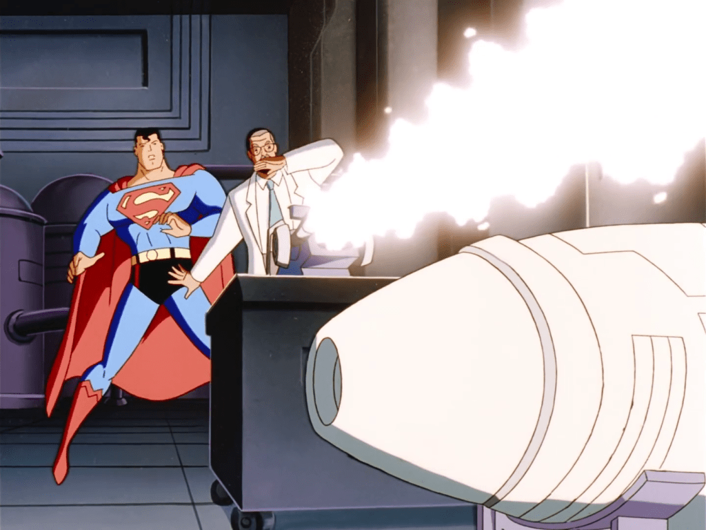 Professor Hamilton discovers a strange device inside a hidden compartment in Superman’s rocket ship. Supes confirms it’s a Phantom Zone projector, capable of transporting dangerous aliens to another dimension.