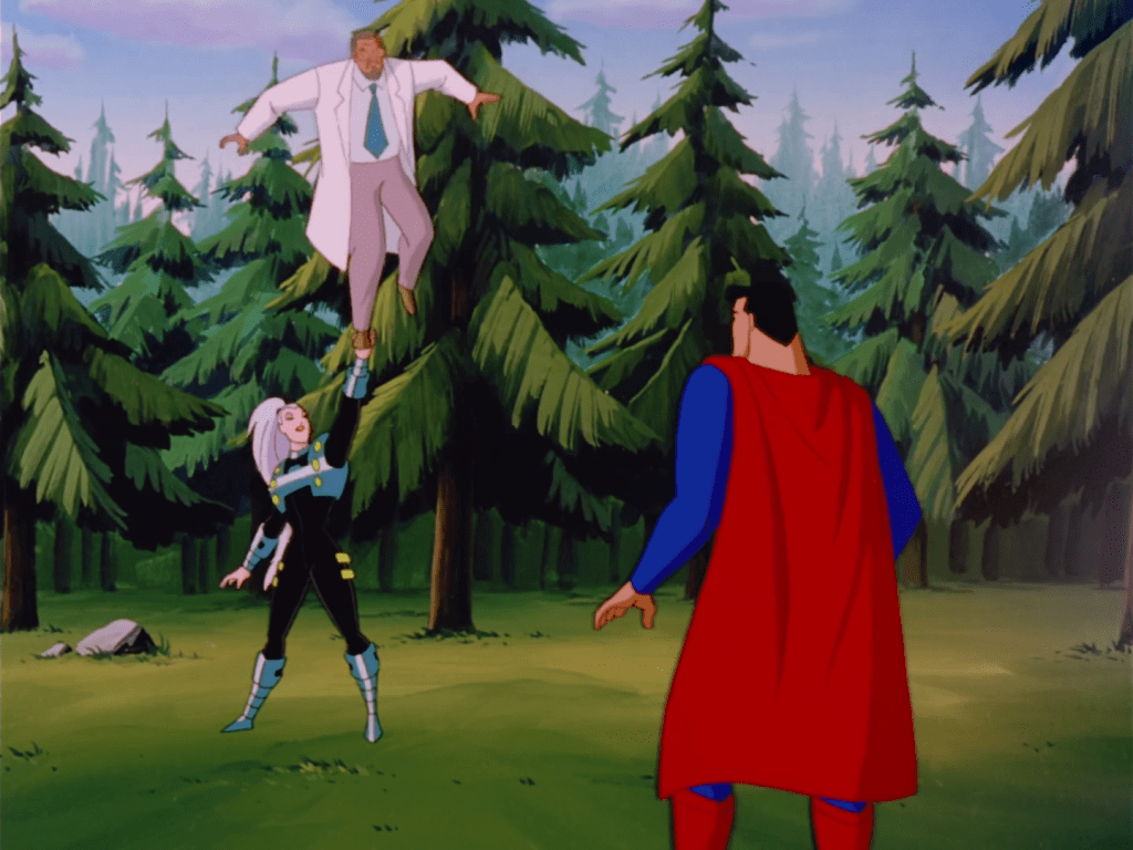 Testing out what she’s learned, he brings her along to stop a robbery, but she ends up getting a little too aggressive with the thieves, perturbing Superman.