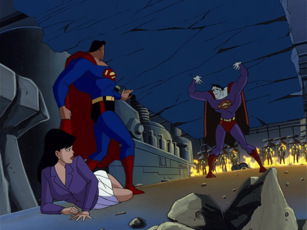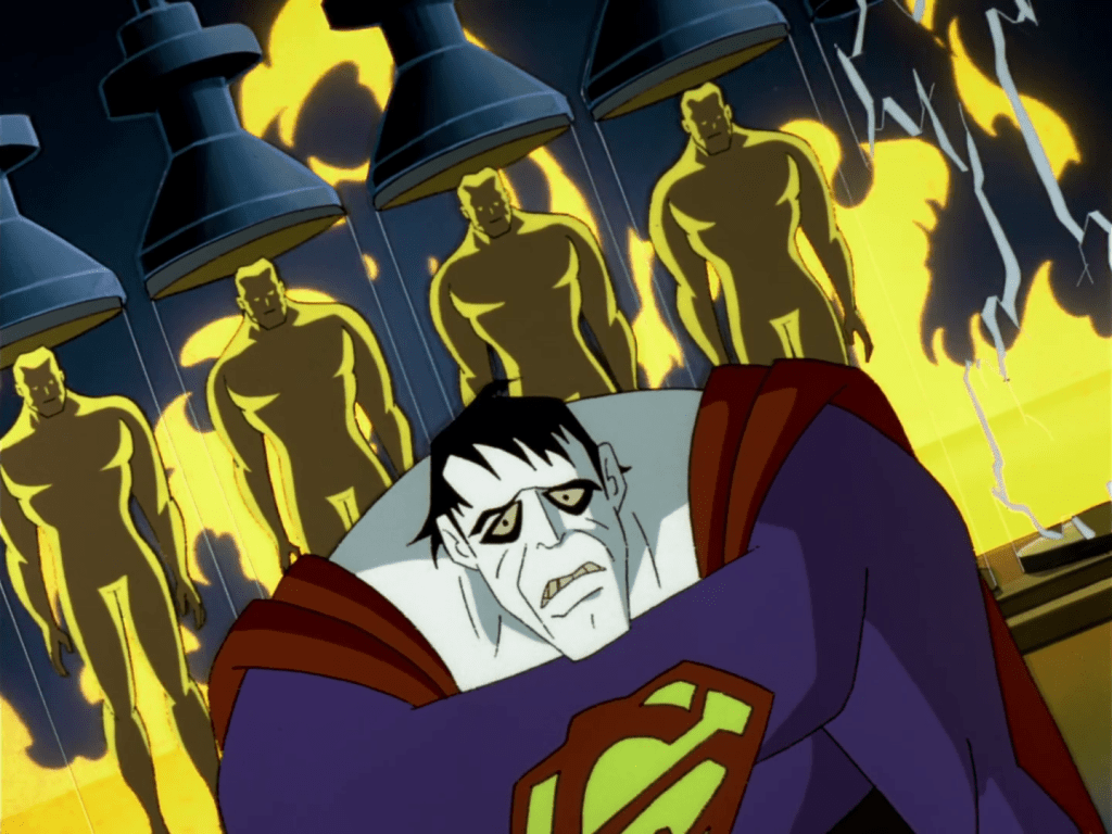 It’s a little weird that his costume changes during his fight with Superman, with the colour draining and even the chest logo becoming an entirely different one. Artistic licence, I guess? That or it’s just a low-care episode in general…