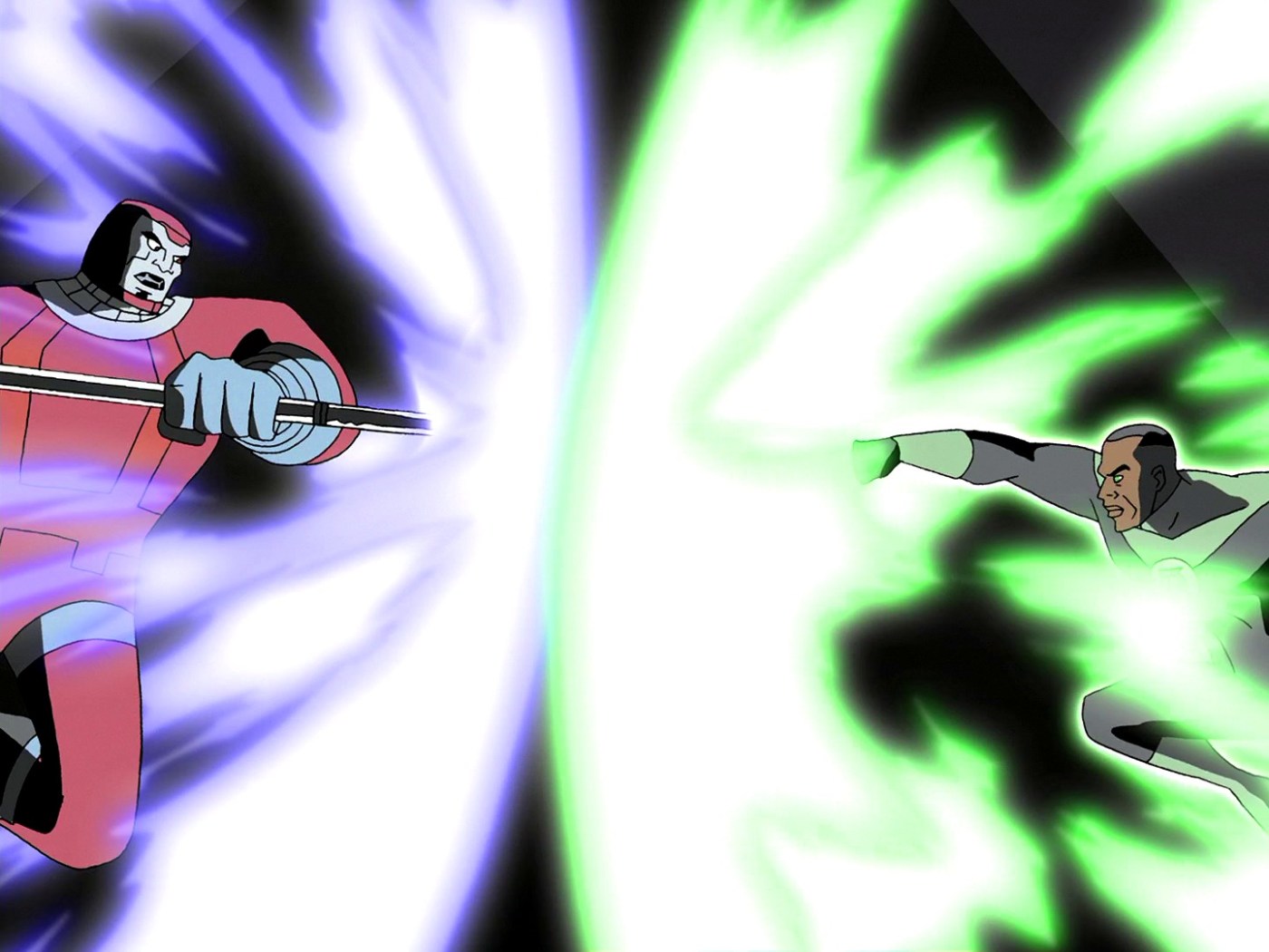 Phil LaMarr puts in by far his best performance so far, not requiring Garrett Morris’ help this time either. He begins in a mostly passive role, having accepted his fate, before scolding Flash for not taking it like a man when they’re both sentenced to death. But the second he learns he’s innocent after all he leaps into action and angrily bellows at Kanjar-Ro, showing a nice little bit or range. He also delivers the best version of the Green Lantern Oath we’ve heard to date towards the end, and then gives his fellow Lanterns the cold shoulder when they try to apologise for him. He ends the episode by demonstrating a little vulnerability towards his teammates for never giving up on him. Between the script and LaMarr’s voice acting they have rescued this character from an extremely rough starting point.