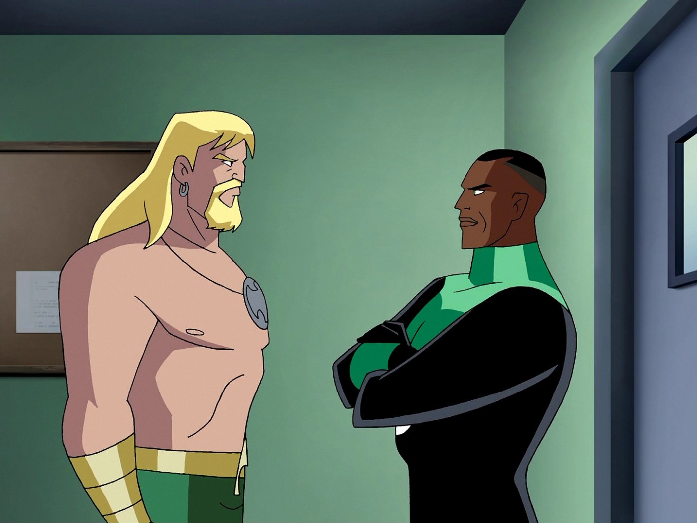 In his previous appearance I talked about how interesting Aquaman can be due to his more neutral position, placing his kingdom over superhero antics. Like a lesser version of Doctor Doom, really. They play in the same space here, delving into the idea of ‘heroes’ overstepping their jurisdiction. Atlantis may not be an officially recognised nation as far as world governments are concerned, but Clark immediately backs down and apologies. This is the stuff I wished they’d gone even further with in ‘Absolute Power‘, where he was unwilling to do anything about Jax-Ur and Mala’s governance of an alien planet. This is where the ensemble aspect of the show shines, as Clark and Diana act as calming agents, negotiating a truce with Arthur… but John Stewart is of course a bootlicker at heart and re-escalates tensions by refusing to leave the submarine behind. He’s easily goaded into hostility by Aquaman being unimpressed by his (and subtextually America’s) bluster, with Superman having to hold back his teammate. Good shit!